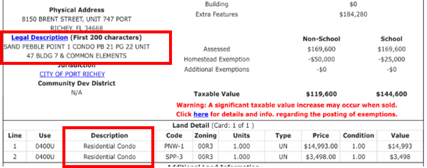 Not sure which form you need to use? The Condo Rider or the HOA Disclosure? Since there is a significant difference between the two addenda you can easily check by looking at the Public Record (IMAPP/Realist) or the Property Record from the county property appraiser website for the property type, legal description & use coe.