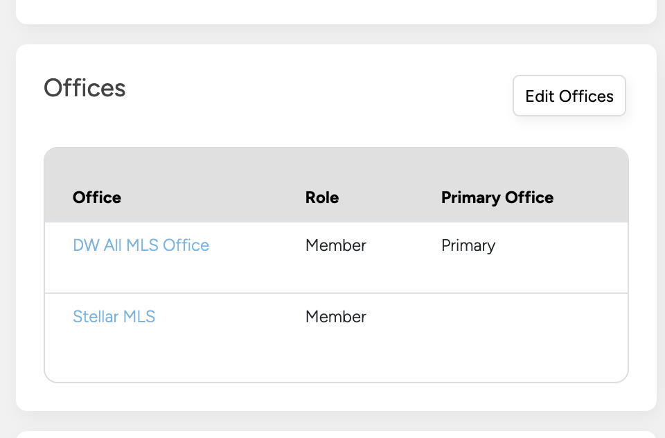 - Scroll down to the right-hand side and look under Offices to verify your connected MLS.