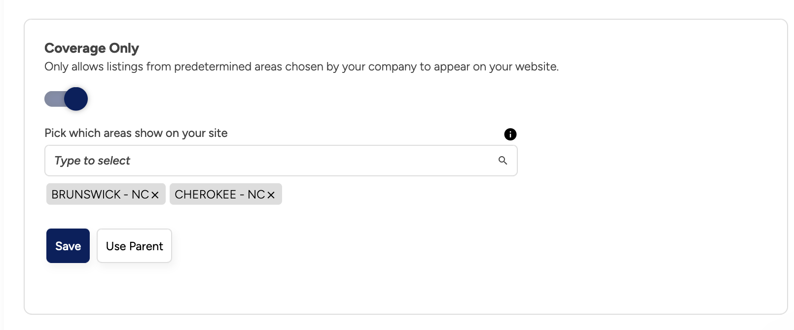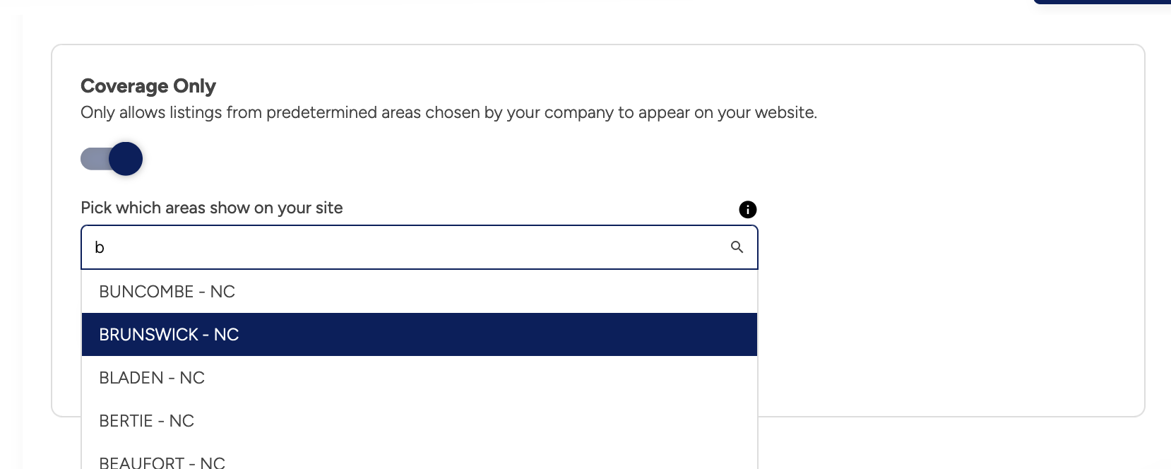 - In the Website Settings, scroll down to where it says Coverage Only in the settings and enable it. After a minute, a new section titled Pick which areas show on your site will appear.