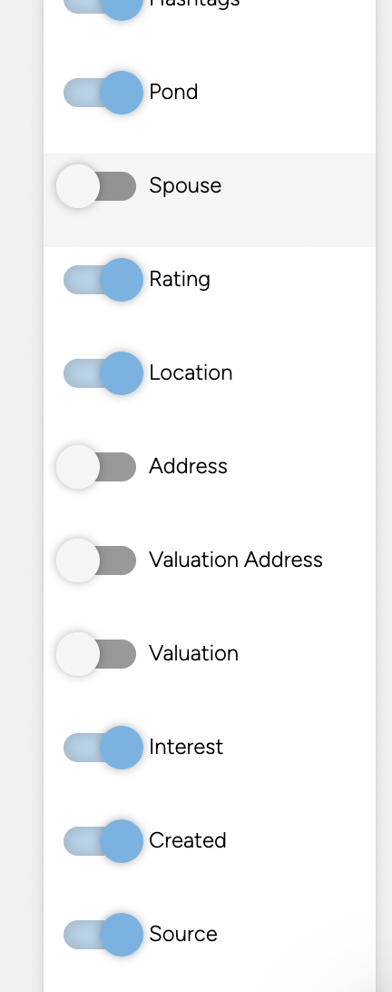 - Simply check or uncheck the boxes next to each item to toggle the visibility of those columns.