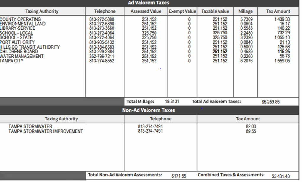 assessed value of $251,152. The Ad Valorem Taxes are based on the on the